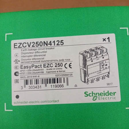 • EZCV250N4 Schneider 125A circuit breaker, With Earth Leakage Protection, EasyPact EZCV250N, TMD, 125A, 4 poles 4d