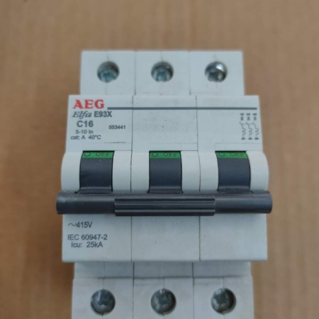 • 837-830-730-000 AEG Elfa E93XC16 16A 25kA 3-pole Circuit Breaker
