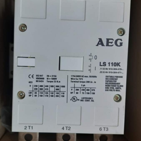 • 910-304-471-00 AEG LS110K.22 Contactor, 110kW @AC-3, 3-pole, Coil 220-230V 50Hz, 277V 60Hz