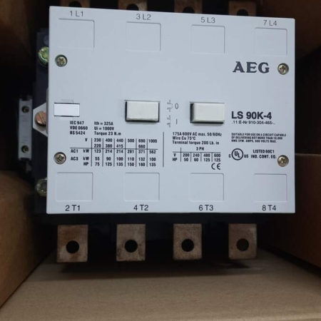 • 910-304-465-00 AEG LS90K-4 Contactor, 90kW @AC-3, 4-pole, Coil 220-250V 50Hz, 277V 60Hz