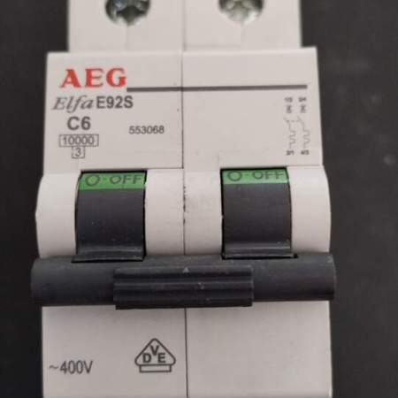 • 553068 AEG Elfa E92SC6 6A 10kA 2-pole Circuit Breaker