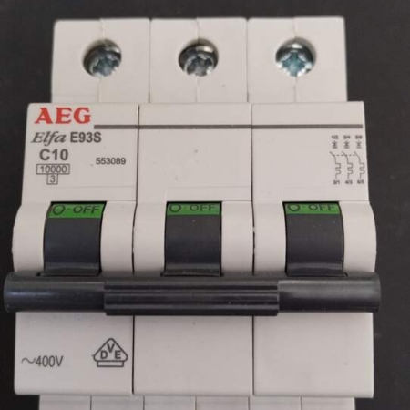 • 553089 AEG Elfa E93SC10 10A 10kA 3-pole Circuit Breaker