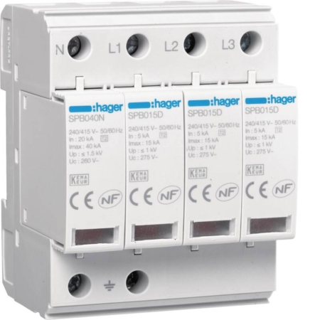 • Surge Protection Device 4P T2 TNS/TT Uc 275V In 5kA Imax 15kA