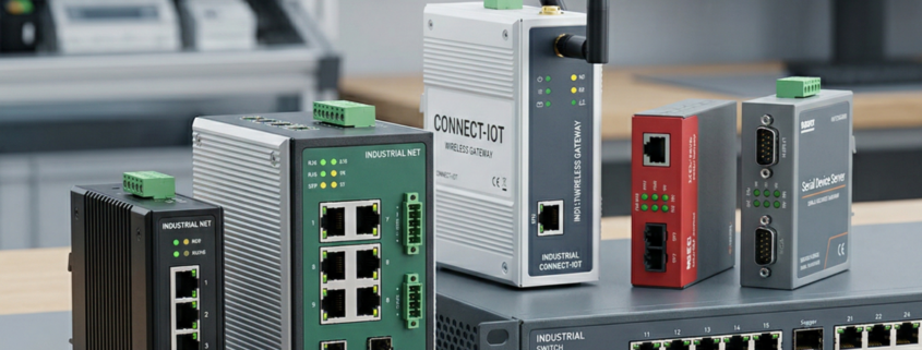 Industrial Ethernet switches, connectors, managed switches, and network infrastructure components. Hirschmann and other brands for reliable communication in automation and SCADA systems.