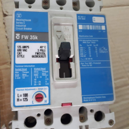 • FW3125L Westinghouse 125A 3-pole FW35K Circuit Breaker