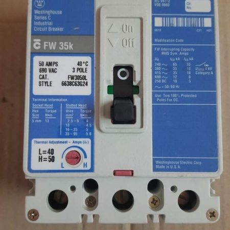 • FW3050L Westinghouse 50A 3-pole Circuit Breaker