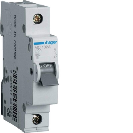 • MCB 1P 6kA C-20A 1M