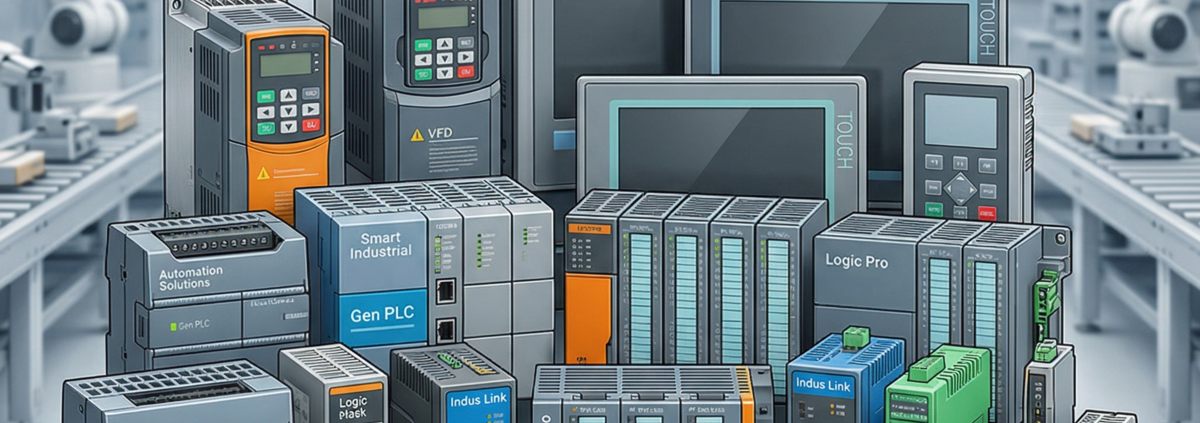 Programmable logic controllers (PLCs), PLC I/O expansion modules, HMI touch panels, PLC communication modules, PLC power supply modules, and programming accessories. Schneider Modicon TM3/TM2/M221/M241/M262, Siemens S7-1200/S7-1500/LOGO!, ABB AC500, and related automation components.
