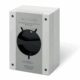 Catalogue notes: Handle padlockable in OFF (3 padlocks) and ON (1 padlock) position, equipped with door interlock, blank side with drilling point marks on top side base, break-through cable entries on bottom side base, reversible base.